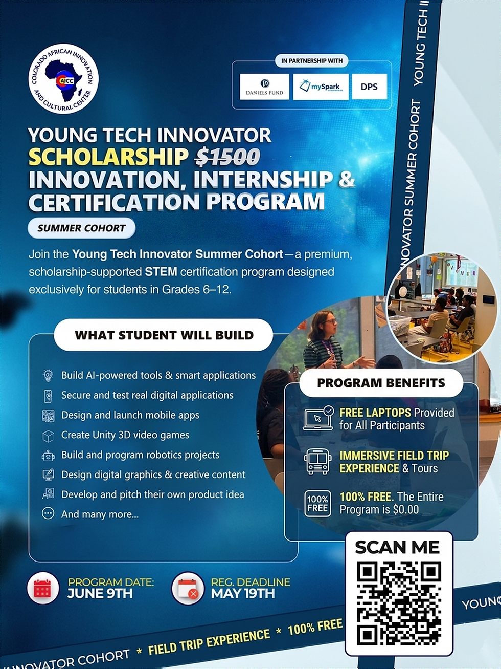 The Young Tech Summer Program is free for qualifying families. No tuition. No registration fee. It is funded through grants and sponsors who believe that access to quality tech education should not depend on what a family can afford. Your job is simply to register your child before spots fill up.